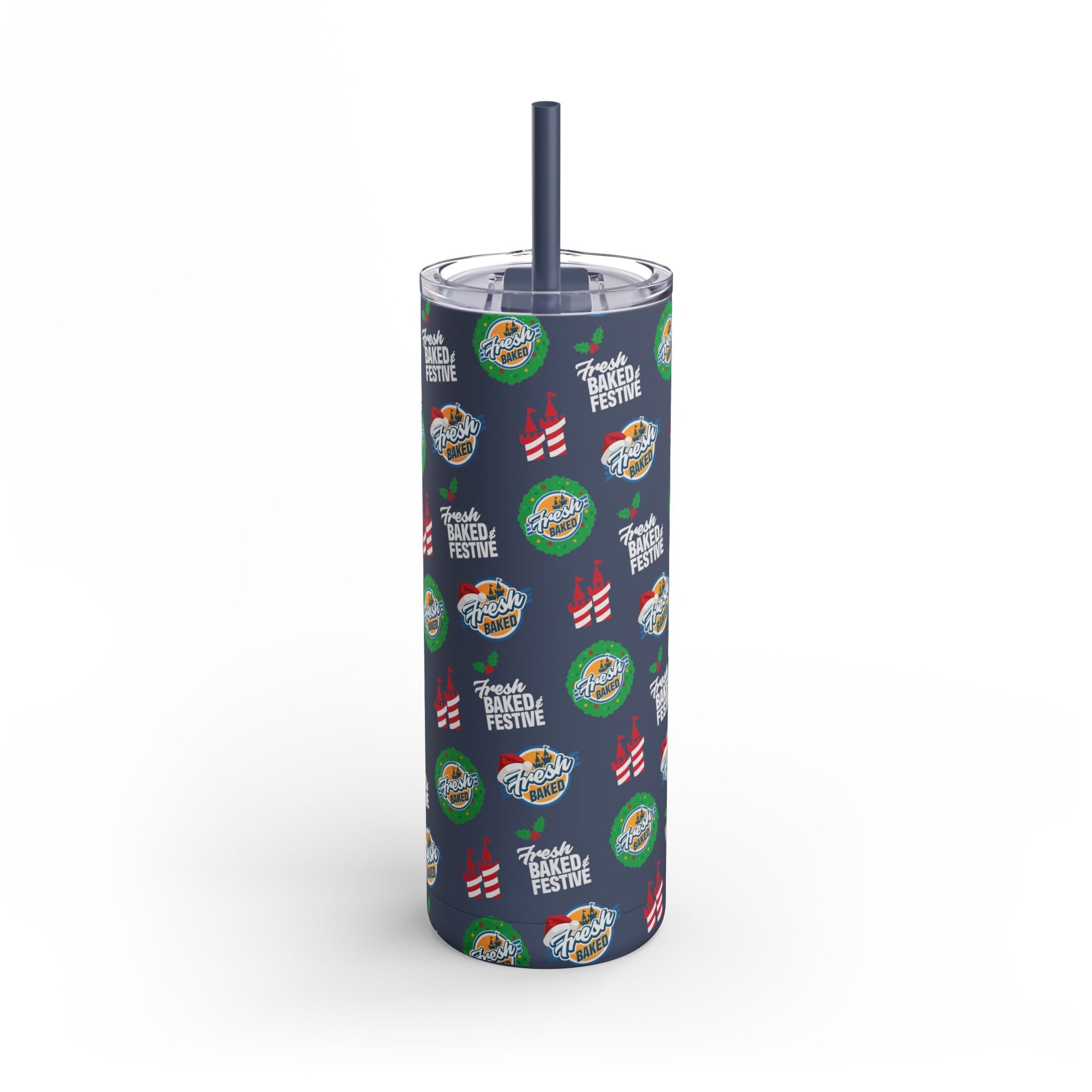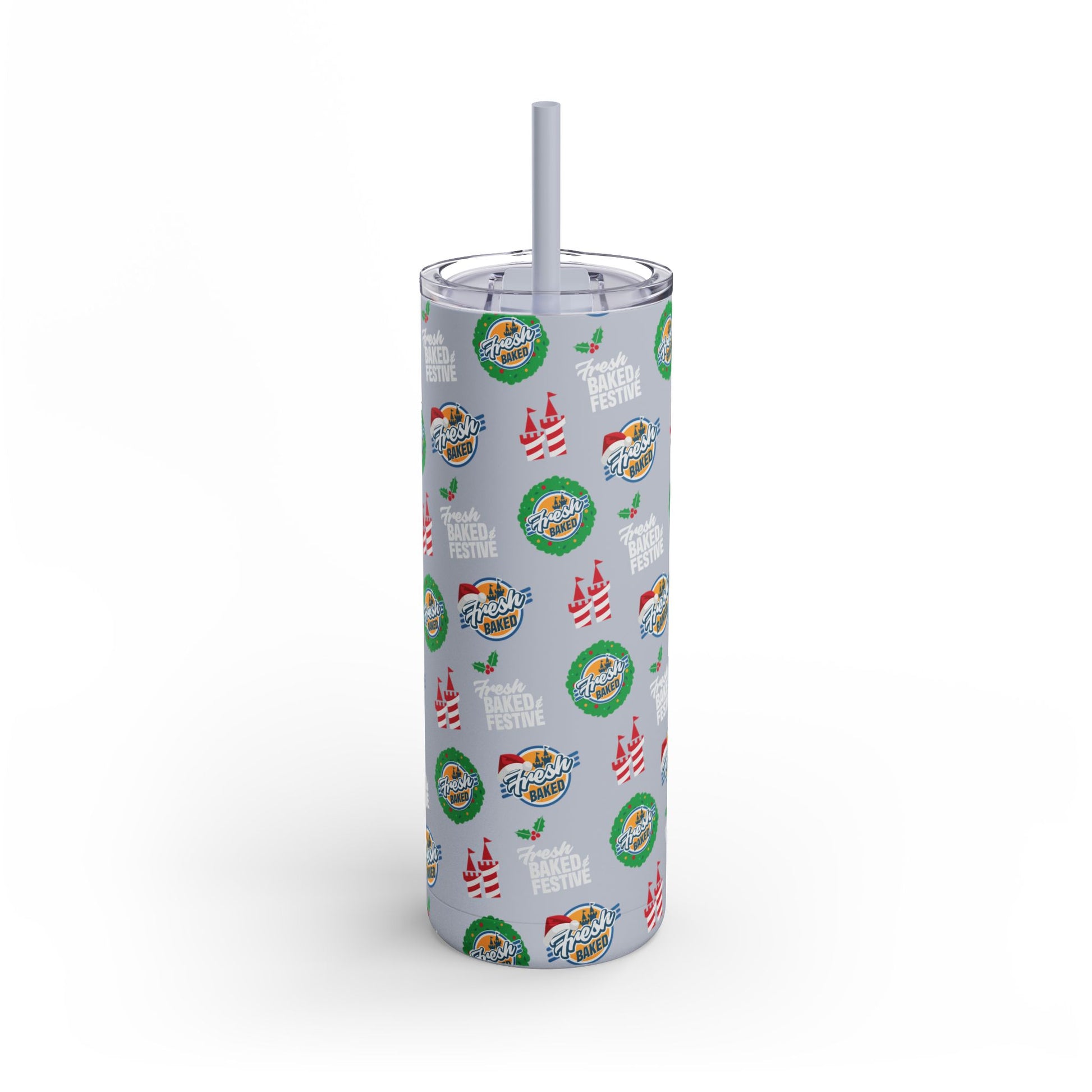 Sip in style all season long with this festive 20oz tumbler featuring the full Fresh Baked holiday pattern — from candy-striped castles to cheerful wreaths. With a smooth matte finish and double-wall insulation, it keeps drinks hot or cold for hours while looking effortlessly merry. Perfect for cocoa by the tree, park days, or gifting to your favorite holiday enthusiast.