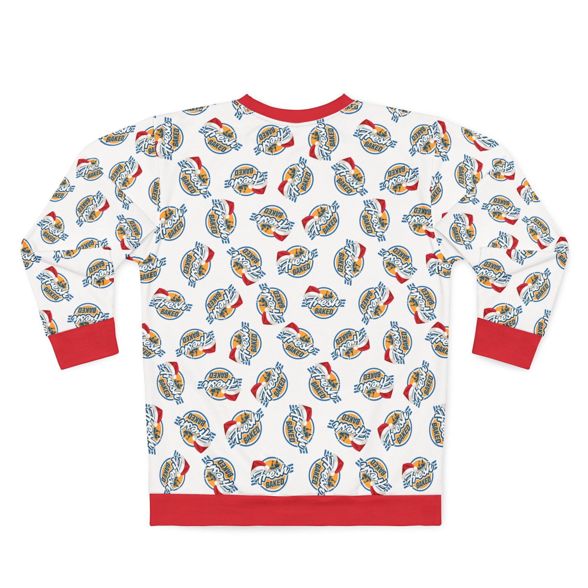 Show off your Fresh Baked spirit this holiday season with this all-over print unisex sweatshirt. Featuring the classic Fresh Baked logo with a festive twist, it’s the perfect mix of cheerful style and cozy comfort. Whether you’re lounging at home, celebrating with friends, or enjoying a day at the parks, this sweatshirt adds instant holiday magic to your wardrobe.