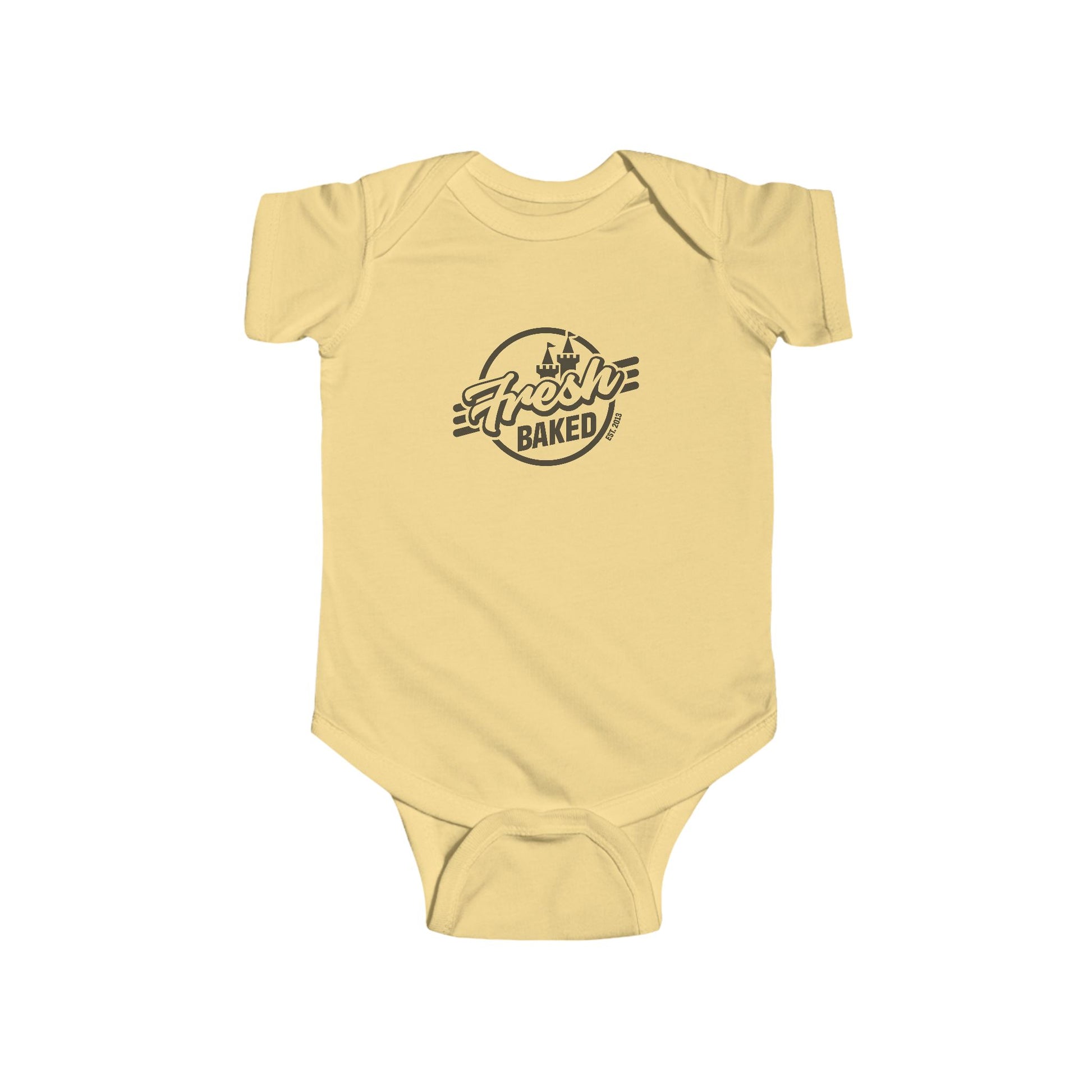 Cozy, cute, and perfectly park-ready—this Fresh Baked bodysuit is made for the littlest dreamers in your crew! Crafted from soft fine jersey cotton with easy-snap closures, it's designed for quick changes and all-day comfort (because you never know when nap time will strike). Featuring the Fresh Baked signature logo, it's a must-have for magical moments from stroller rides down Main Street to first churro selfies.