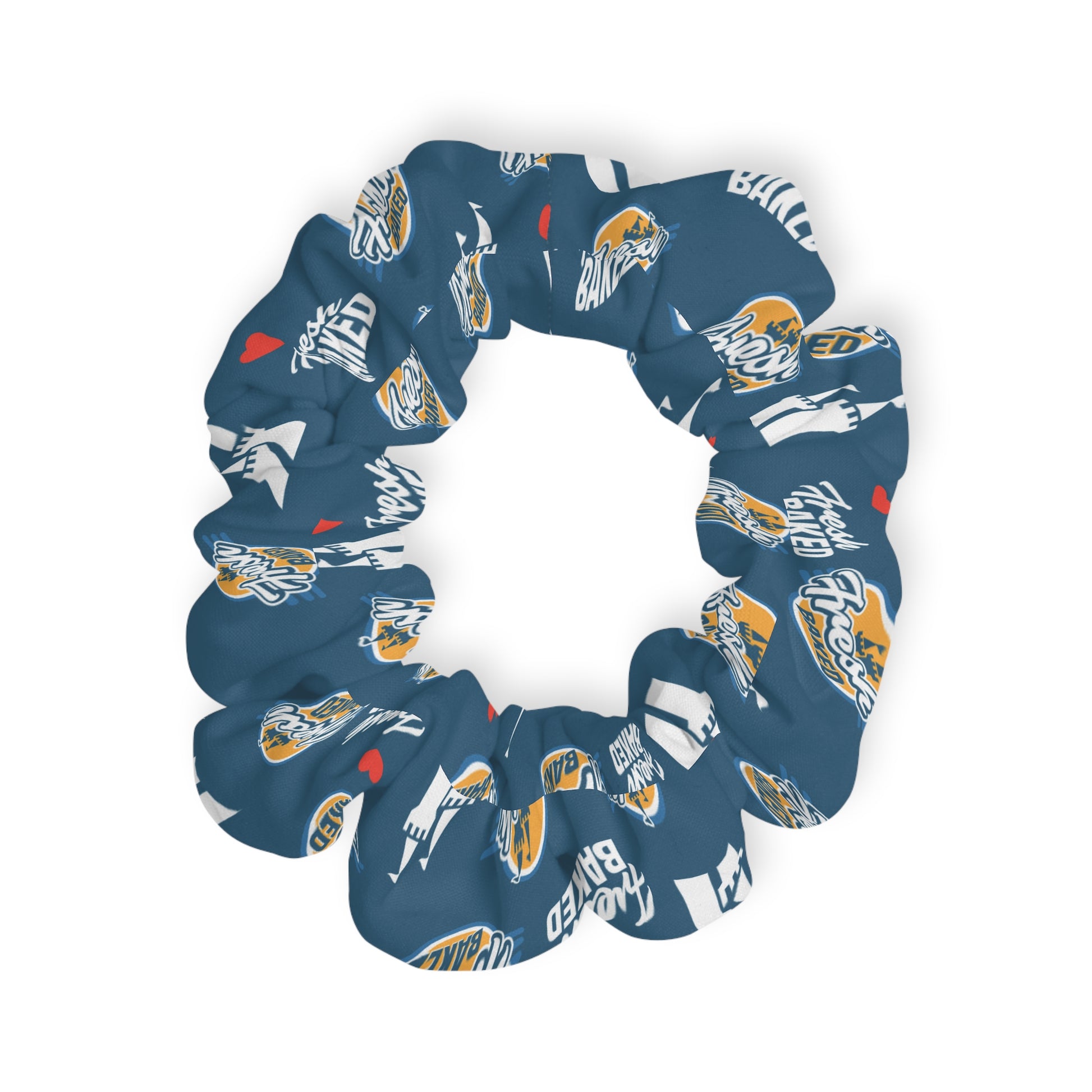 A royal reminder to stay Fresh Baked. This scrunchie features an all-over print of castles, logos, and tiny red hearts — for those who like a little magic in their messy bun. It’s comfy, classic, and park day approved.