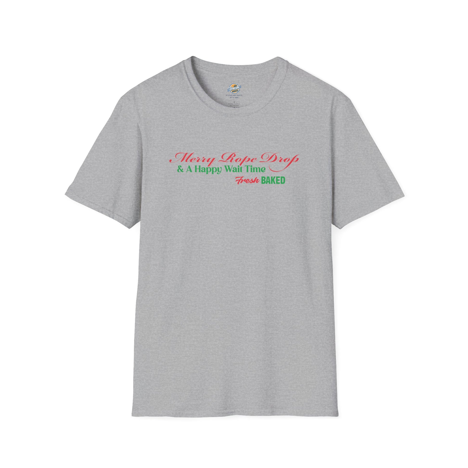 The Merry Rope Drop & A Happy Wait Time tee celebrates the joy of early mornings, festive crowds, and that unmistakable holiday energy that makes the parks feel extra special. Crafted from ultra-soft materials, this unisex soft-style tee is made from 100% cotton for all-day comfort. The twill-taped shoulders add durability, while the ribbed knit collar holds its shape through every rope drop, ride, and cocoa stop.