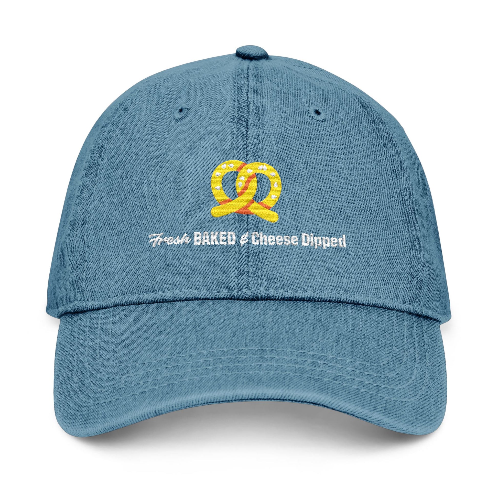 Soft, salty, and a little cheesy—just how we like it. This 6-panel unstructured denim cap is the ultimate snack-inspired accessory, featuring a pretzel design and the phrase Fresh Baked & Cheese Dipped embroidered up front. Made from 100% cotton with a relaxed fit and pigment-dyed finish, it’s got just the right touch of vintage flavor. Whether you're hitting the parks or just embracing your inner snack, this one brings the vibes.