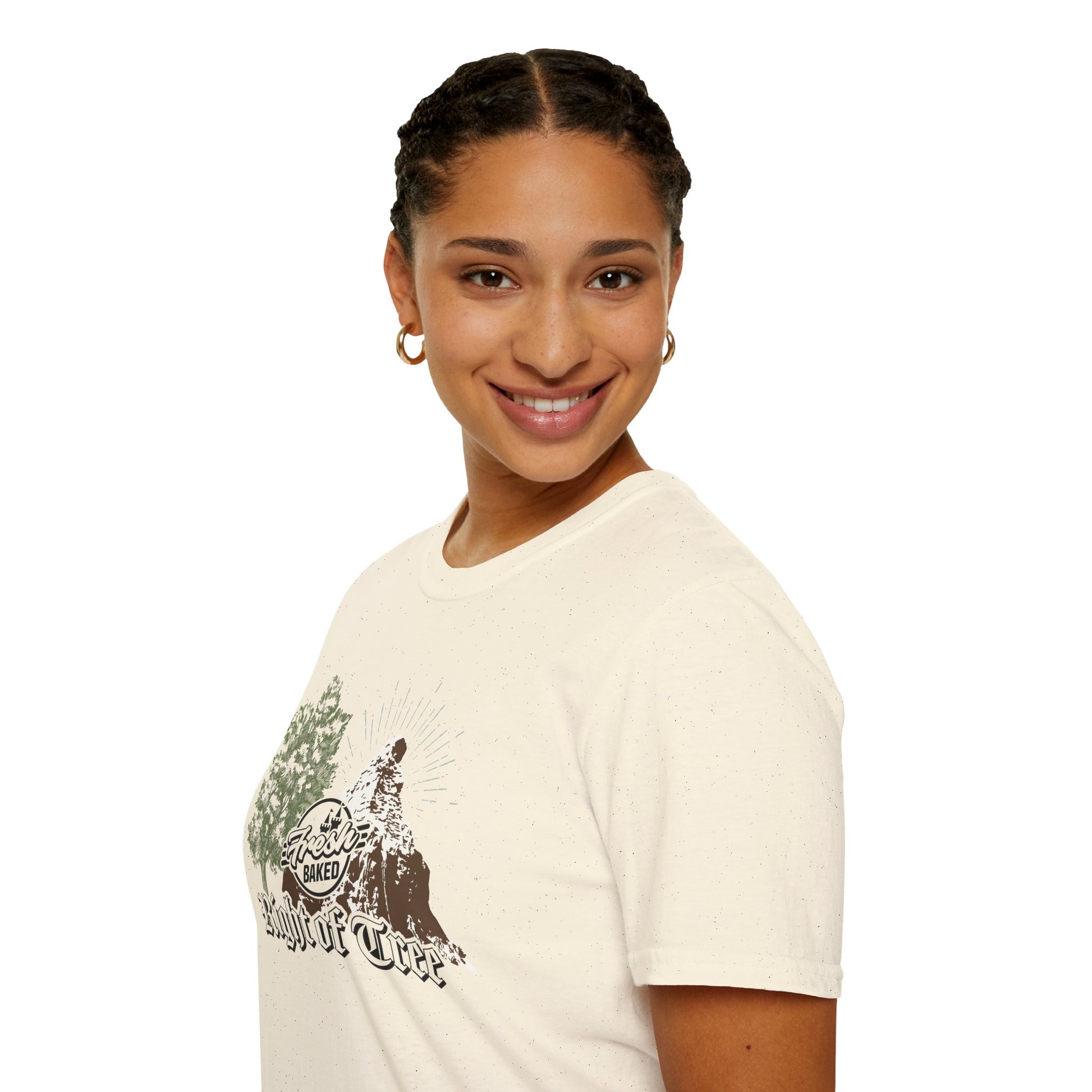 Crafted from ultra-soft materials, this unisex soft-style tee is made from 100% cotton. The twill-taped shoulders add durability, while the ribbed knit collar holds its shape through every ride, rope drop, and churro stop. Whether you’re in line for the mountain or just channeling the magic from home, this shirt marks you as part of the Fresh Baked family—where the “Right of Tree” way is always the best way.