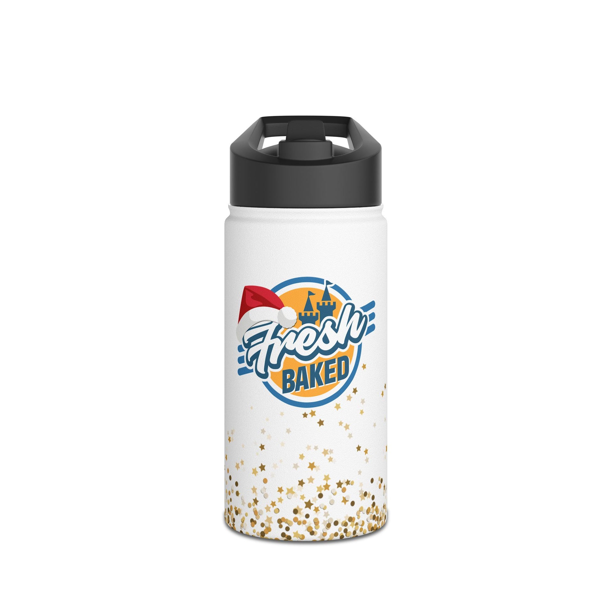 Stay merry and hydrated with this festive stainless steel water bottle featuring the Fresh Baked Santa hat logo and golden star details. Designed for both park days and cozy winter outings, it keeps your drinks perfectly chilled or piping hot for hours.