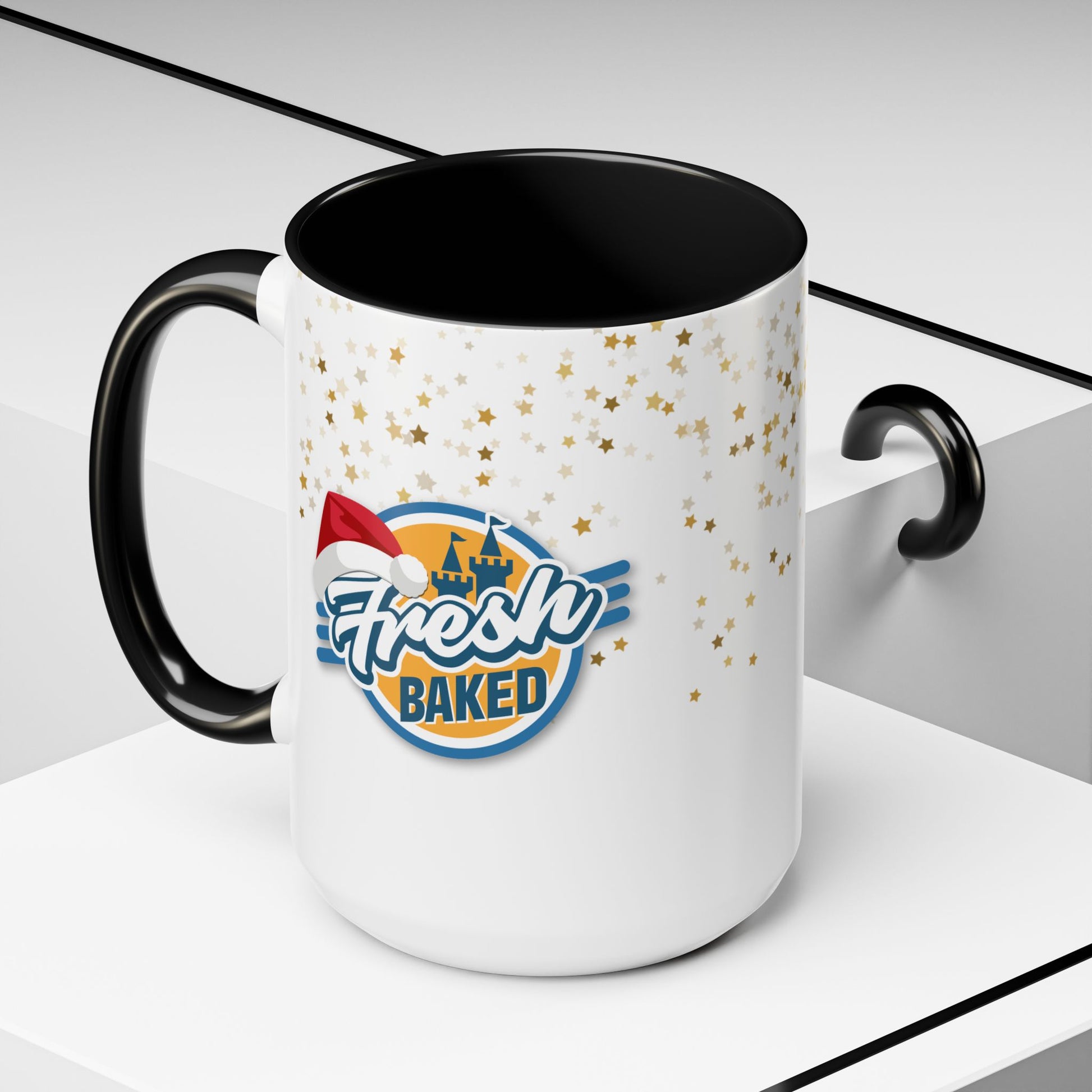 Sip in seasonal style with this festive accent mug — complete with gold star details and the Fresh Baked logo topped with a Santa hat. Whether you’re starting your morning with coffee, winding down with cocoa, or watching your favorite park videos, this mug adds a little sparkle to every sip.
